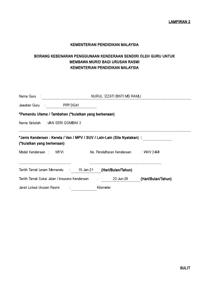 Contoh Surat Kebenaran Menggunakan Kenderaan Pdf Letter 7saudara Com
