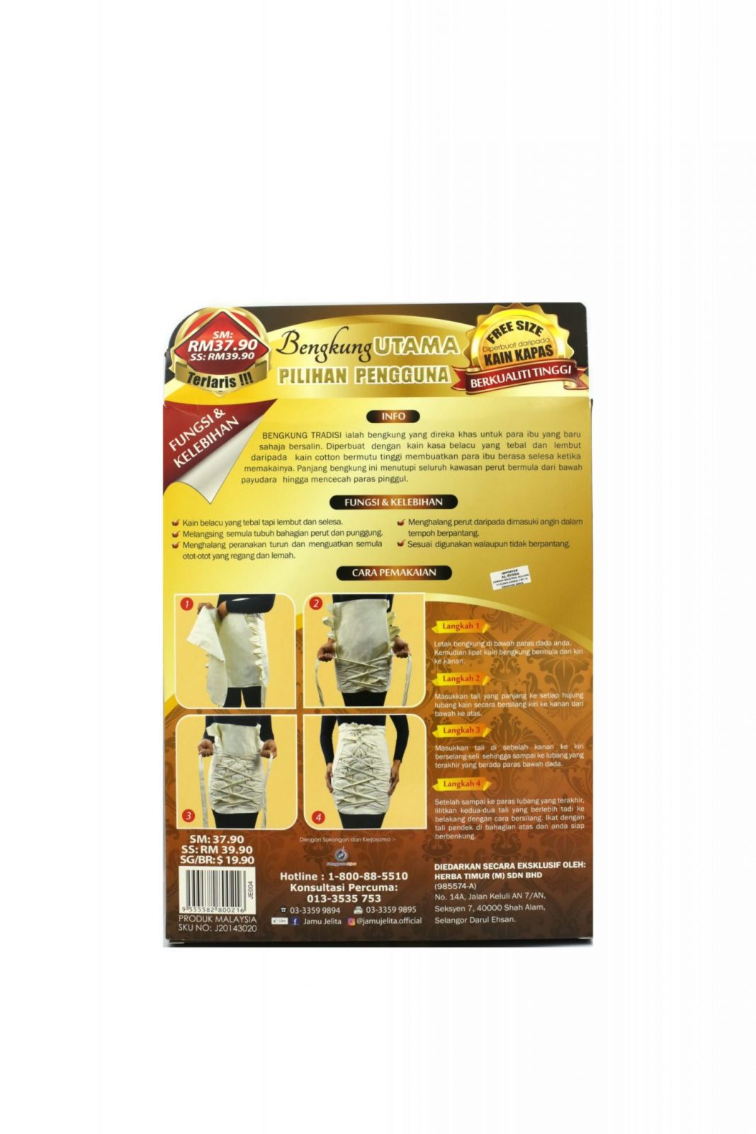 Bengkung Tradisi Jamu Jelita merupakan diperbuat daripada kain kasa belacu yang tebal dan lembut serta selesa untuk dipakai kaum ibu sepanjang tempoh berpantang bagi membantu menguatkan otot yang regang dan lemah serta mengembalikan bentuk tubuh yang asal. Shape body back to original state Good for body slimming process Strengthen bones and muscles Easy to use and comfortable Made from high quality cotton Price is. See more of Jamu jelita bengkung tradisi on Facebook.